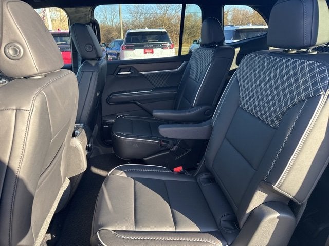 12 Speakers, 18x7.0 Polished/Painted Alloy wheels, 3 Years of OnStar One, 3.49 Final Drive Axle Ratio, 3rd Row 60/40 Power Split-Folding Bench, 3rd row seats: split-bench, 4-Wheel Disc Brakes, 6-Way Power Front Passenger Seat Adjuster, 7-Passenger Seating (2-2-3 Seating Configuration), 8-Way Power Driver Seat Adjuster, ABS brakes, Air Conditioning, AM/FM radio: SiriusXM with 360L, Apple CarPlay/Android Auto, Auto High-beam Headlights, Auto-dimming door mirrors, Auto-dimming Rear-View mirror, Automatic temperature control, Bodyside moldings, Bose Premium 12-Speaker System w/Sub-Woofer, Brake assist, Bumpers: body-color, Compass, Delay-off headlights, Driver 4-Way Power Lumbar Seat Adjuster, Driver door bin, Driver vanity mirror, Dual front impact airbags, Dual front side impact airbags, Electronic Stability Control, Emergency communication system: OnStar Services capable, Exterior Parking Camera Rear, Four wheel independent suspension, Front anti-roll bar, Front Bucket Seats, Front Center Armrest, Front dual zone A/C, Front fog lights, Front Passenger 4-Way Power Lumbar Seat Adjuster, Front reading lights, Fully automatic headlights, Garage door transmitter, Genuine wood console insert, Genuine wood dashboard insert, Genuine wood door panel insert, Heads-Up Display, Heated & Ventilated Driver & Front Passenger Seats, Heated door mirrors, Heated Driver & Front Passenger Seats, Heated front seats, Heated rear seats, Heated steering wheel, Illuminated entry, Leather steering wheel, Low tire pressure warning, Memory Package, Memory seat, Navigation System, Occupant sensing airbag, Outside temperature display, Overhead airbag, Overhead console, Panic alarm, Passenger door bin, Passenger vanity mirror, Perforated Leather-Appointed Seat Trim, Power door mirrors, Power driver seat, Power Liftgate, Power passenger seat, Power steering, Power windows, Radio data system, Radio: 15 Premium GMC Infotainment System, Rain sensing wipers, Rear air conditioning, Rear anti-roll bar, Rear reading lights, Rear side impact airbag, Rear window defroster, Rear window wiper, Remote keyless entry, Security system, SiriusXM w/360L, Speed control, Speed-sensing steering, Split folding rear seat, Spoiler, Sport steering wheel, Steering wheel memory, Steering wheel mounted audio controls, Tachometer, Telescoping steering wheel, Tilt steering wheel, Traction control, Trip computer, Turn signal indicator mirrors, Variably intermittent wipers, Ventilated front seats, Voltmeter, Wheels: 20 x 8 Pearl Nickel Machined Aluminum.