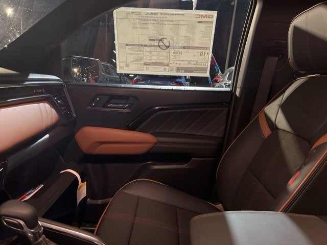 120-Volt Bed Mounted Power Outlet, 18x7.0 Polished/Painted Alloy wheels, 2 1st Row USB Charge/Data Ports, 2 Rear USB Ports in Center Console (Charge-Only), 3.42 Rear Axle Ratio, 4-Way Manual Front Passenger Seat Adjuster, 4-Wheel Disc Brakes, 6 Speakers, 6-Speaker Audio System Feature, 8-Way Power Driver Seat Adjuster, ABS brakes, Air Conditioning, AM/FM radio: SiriusXM with 360L, Apple CarPlay/Android Auto, Auto High-beam Headlights, Auto-dimming Rear-View mirror, Automatic Emergency Braking, Automatic Stop/Start, Automatic temperature control, Blind Zone Steering Assist with Trailering, Brake assist, Bumpers: body-color, Canyon Pro Safety, Canyon Safety Plus Package, Cloth/CoreTec Seat Trim, Compass, Delay-off headlights, Driver and Front Passenger Illuminated Visors, Driver door bin, Driver Mode Selector, Driver vanity mirror, Dual front impact airbags, Dual front side impact airbags, Dual-Zone Automatic Climate Control Air Conditioning, Electronic Stability Control, Emergency communication system: OnStar, EZ-Lift and Lower Tailgate, Following Distance Indicator, Forward Collision Alert, Front anti-roll bar, Front Bucket Seats, Front Center Armrest, Front dual zone A/C, Front fog lights, Front LED Fog Lamps, Front Passenger Seatback Map Pocket, Front Pedestrian and Bicyclist Braking, Front reading lights, Front wheel independent suspension, Heated door mirrors, Heated Driver and Front Passenger Seats, Heated front seats, Illuminated entry, Inside Rear-View Auto-Dimming Mirror, IntelliBeam Automatic High Beam on/Off, Interior Overhead Courtesy Light with Dual Reading Lamp, Lane Keep Assist with Lane Departure Warning, Low tire pressure warning, MultiStow Tailgate Storage Compartment, Navigation System, Occupant sensing airbag, Off-Road Suspension, Outside temperature display, Overhead airbag, Overhead console, Panic alarm, Passenger door bin, Passenger vanity mirror, Power door mirrors, Power Driver Lumbar Control Seat Adjuster, Power driver seat, Power steering, Power windows, Radio data system, Radio: 11.3 Diagonal Premium GMC Infotainment System, Rear Cross Traffic Braking, Rear of Console 120-Volt Power Outlet, Rear reading lights, Rear step bumper, Rear window defroster, Remote keyless entry, Remote Vehicle Starter System, Security system, SiriusXM with 360L, Speed control, Speed-sensing steering, Split folding rear seat, Steering wheel mounted audio controls, Stop/Start System Disable Button Engine Control, Tachometer, Tailgate Keyed Cylinder Lock, Telescoping steering wheel, Til and Telescopic Manual Steering Column, Tilt steering wheel, Traction control, Trip computer, Ultrasonic Rear Park Assist, Variably intermittent wipers, Wheels: 18 x 8.5 Gloss Black Aluminum, Wireless Apple CarPlay/Wireless Android Auto.